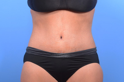 39-year-old female who had two prior pregnancies. She wanted to improve the shape and contour of her midsection. This was accomplished with a full tummy tuck with flank liposuction. She had a significant separation of her abdominal muscles which is known as a rectus diastasis. This typically occurs as the result of pregnancy and can leave you with a pot belly shaped abdomen. Repairing the split by suturing the muscles back in the mid-line where they were originally gives the abdomen a flatter contour. After that was accomplished the excess skin and fat of the lower abdomen was removed. The final piece in shaping her midsection was to perform liposuction of her flanks to enhance her feminine contour.